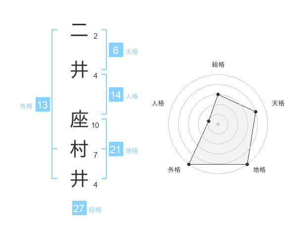 二井 座村井さんの地格は21画の5点!