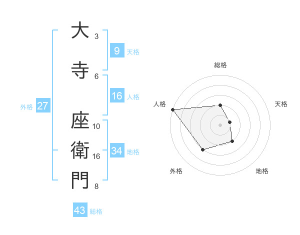 大寺 座衛門さんを姓名の画数から五運を鑑定