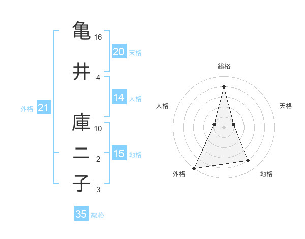 亀井 庫ニ子さんの名前の鑑定結果は!