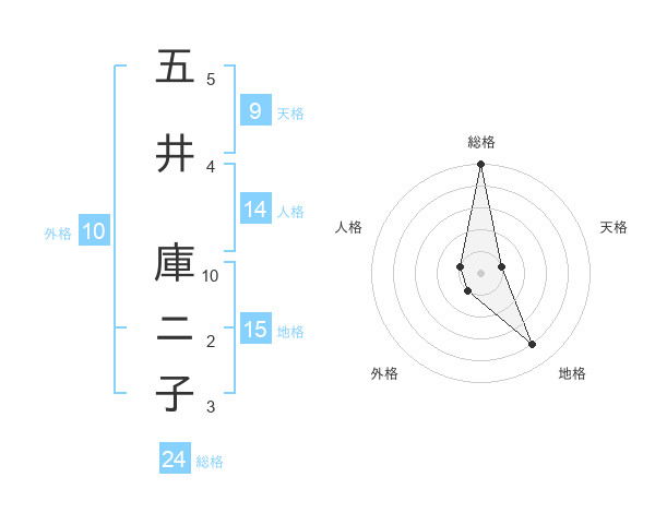 五井 庫ニ子さんの総格は24画の5点!