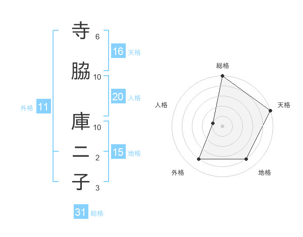 寺脇 庫ニ子さんの総格は31画の5点!