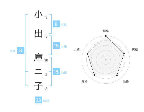小出 庫ニ子さんを姓名の画数から五運を鑑定