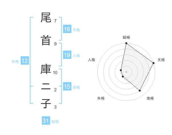 尾首 庫ニ子さんの総格は31画の5点!