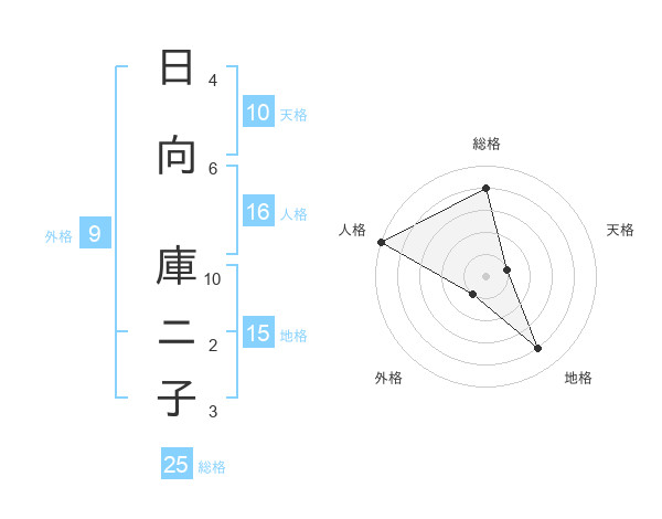 日向 庫ニ子さんを姓名の画数から五運を鑑定
