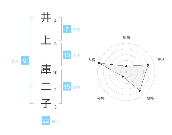 井上 庫二子さんを姓名の画数から五運を鑑定