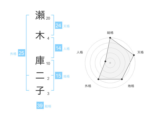瀬木 庫二子さんを姓名の画数から五運を鑑定