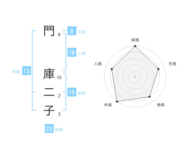 門 庫二子さんの外格は13画の5点!