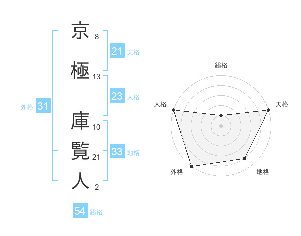 京極 庫覧人さんを姓名の画数から五運を鑑定