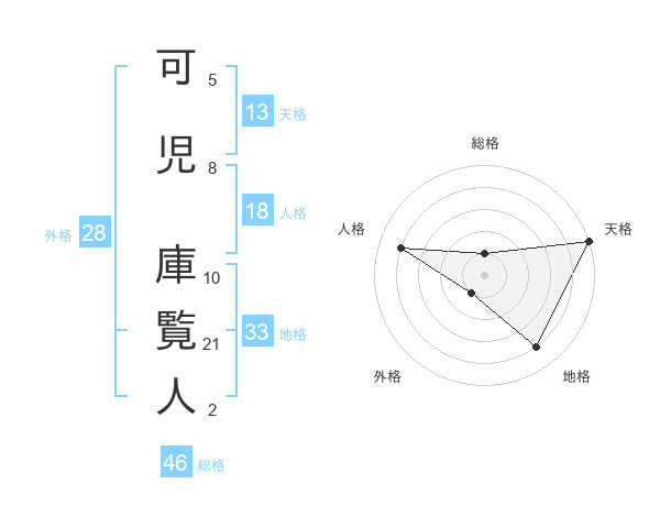 可児 庫覧人さんの総格は46画の1点
