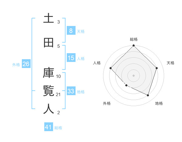 土田 庫覧人さんを姓名の画数から五運を鑑定