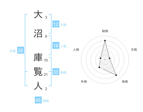 大沼 庫覧人さんを姓名の画数から五運を鑑定