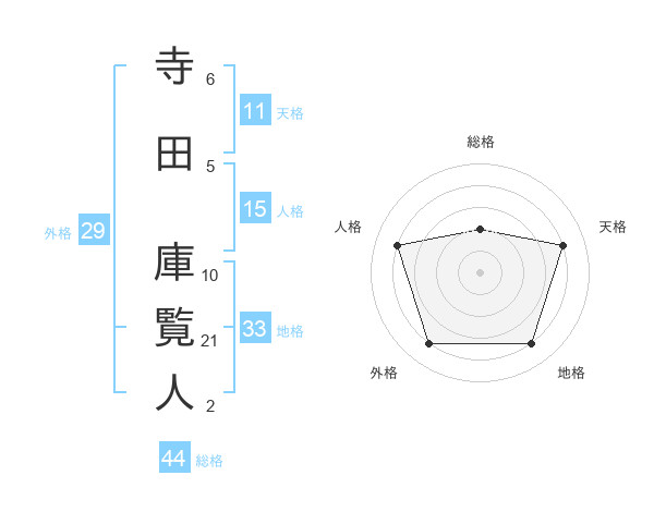 寺田 庫覧人さんを姓名の画数から五運を鑑定