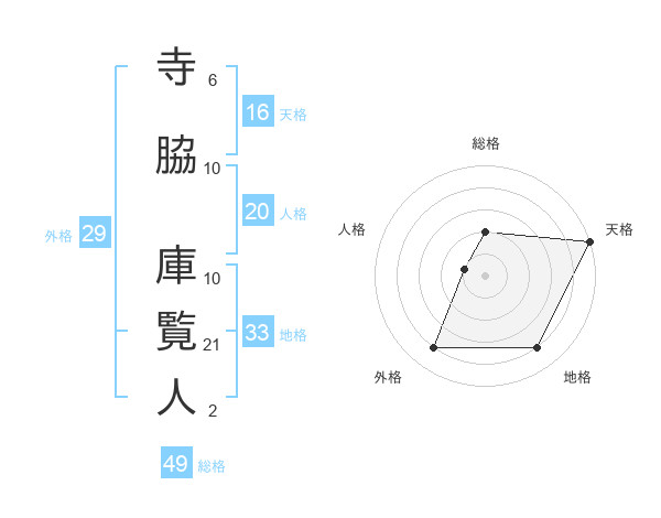 寺脇 庫覧人さんの総格は49画の2点!