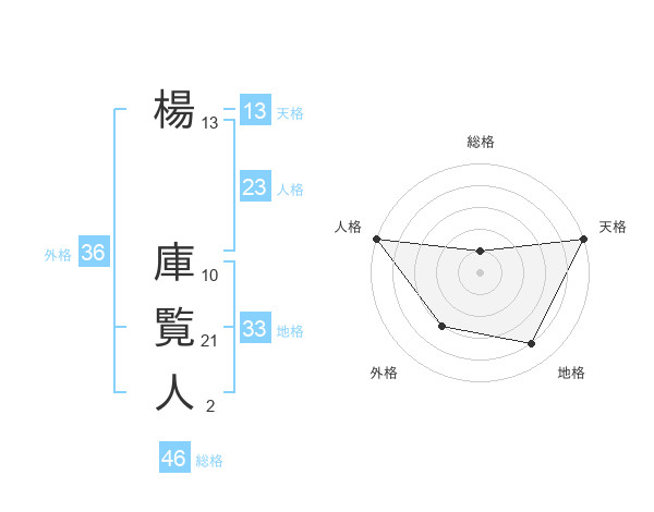 楊 庫覧人さんの総格は46画の1点!
