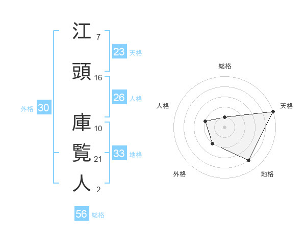 江頭 庫覧人さんを姓名の画数から五運を鑑定
