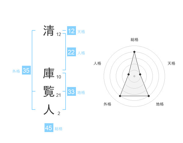 清 庫覧人さんを姓名の画数から五運を鑑定
