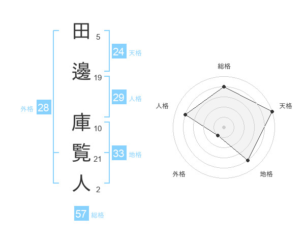 田邊 庫覧人さんの総格は57画の4点!