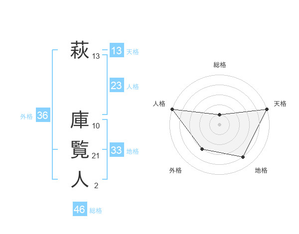 萩 庫覧人さんの総格は46画の1点!