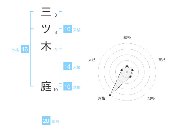 三ツ木 庭さんを姓名の画数から五運を鑑定