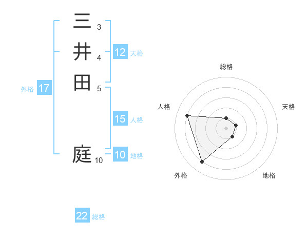 三井田 庭さんの総格は22画の1点!