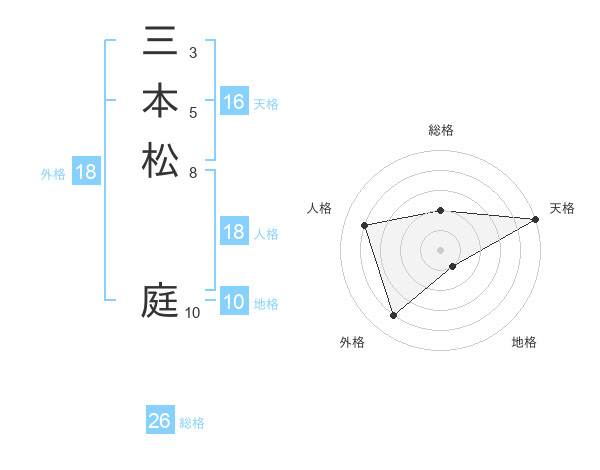 三本松 庭さんの総格は26画の2点!