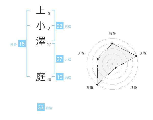 上小澤 庭さんの総格は33画の4点!
