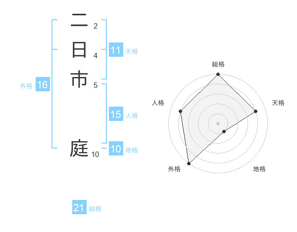 二日市 庭さんの総格は21画の5点!