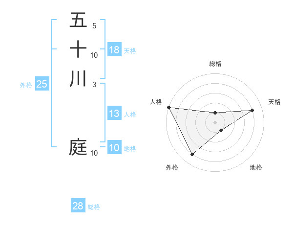 五十川 庭さんの総格は28画の1点!
