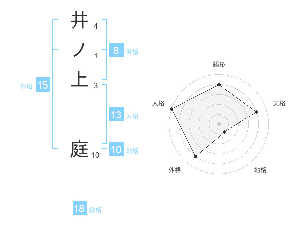 井ノ上 庭さんの総格は18画の4点!