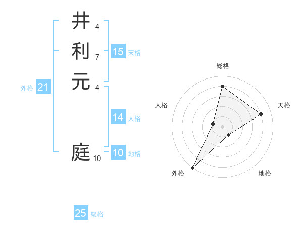 井利元 庭さんの総格は25画の4点!