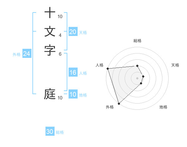 十文字 庭さんの総格は30画の2点!