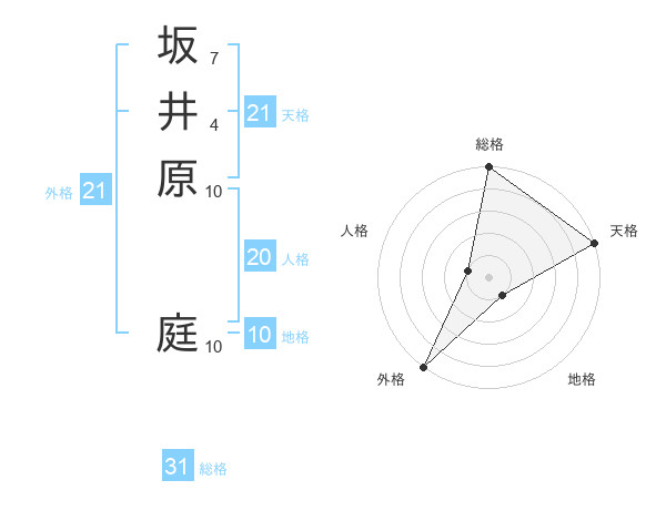 坂井原 庭さんを姓名の画数から五運を鑑定