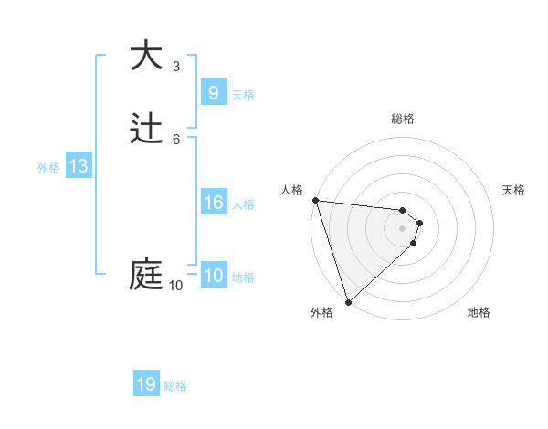 大辻 庭さんの外格は13画の5点!