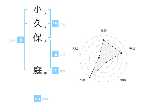 小久保 庭さんの総格は25画の4点!