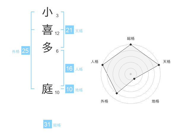 小喜多 庭さんの総格は31画の5点!