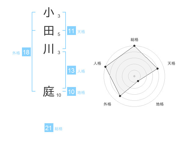 小田川 庭さんの総格は21画の5点!
