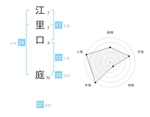 江里口 庭さんの総格は27画の3点!