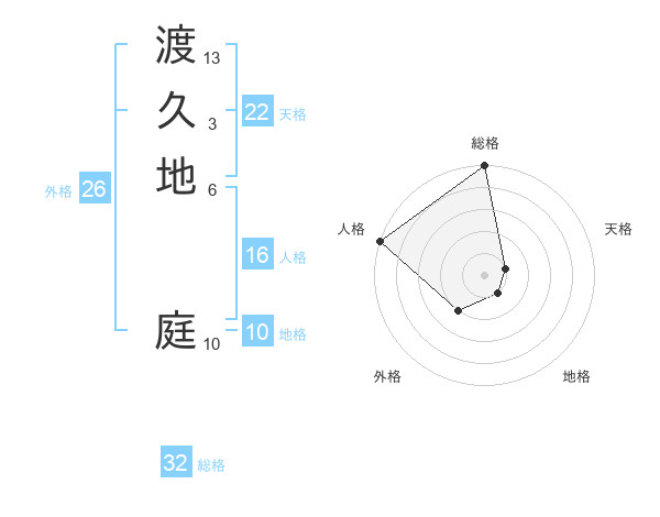 渡久地 庭さんを姓名の画数から五運を鑑定