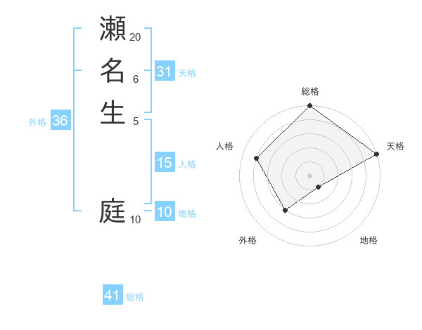 瀬名生 庭さんの総格は41画の5点!
