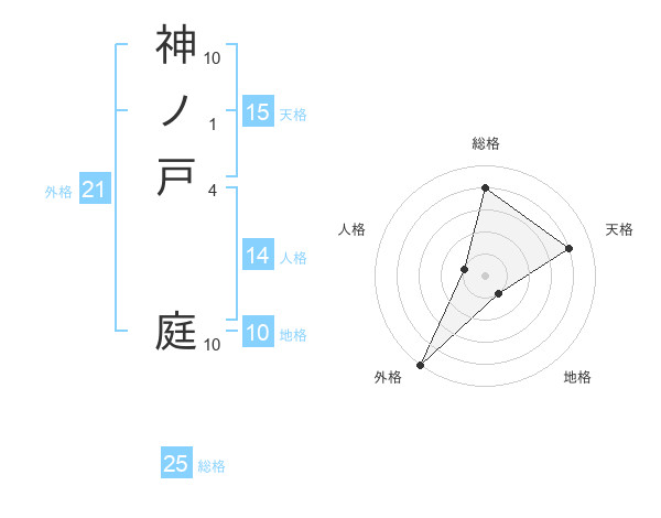 神ノ戸 庭さんを姓名の画数から五運を鑑定