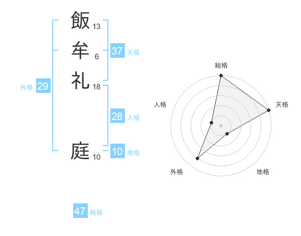 飯牟礼 庭さんの総格は47画の5点!