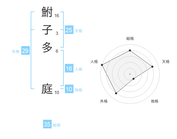 鮒子多 庭さんの総格は35画の4点!