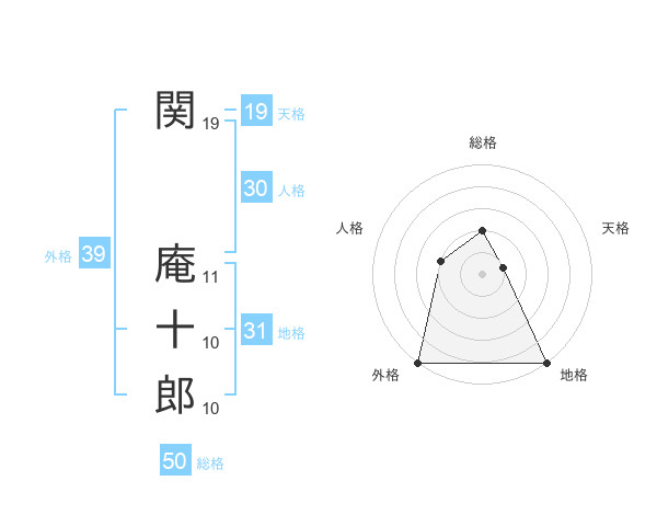 関 庵十郎さんの総格は50画の2点!