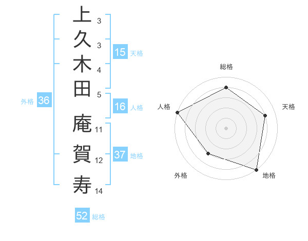 上久木田 庵賀寿さんを姓名の画数から五運を鑑定