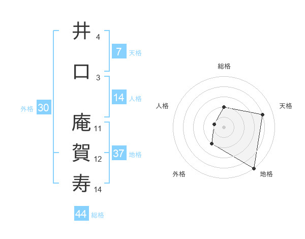 井口 庵賀寿さんを姓名の画数から五運を鑑定