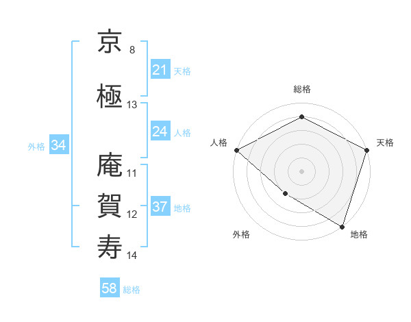 京極 庵賀寿さんの総格は58画の4点!