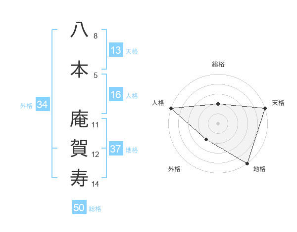 八本 庵賀寿さんを姓名の画数から五運を鑑定
