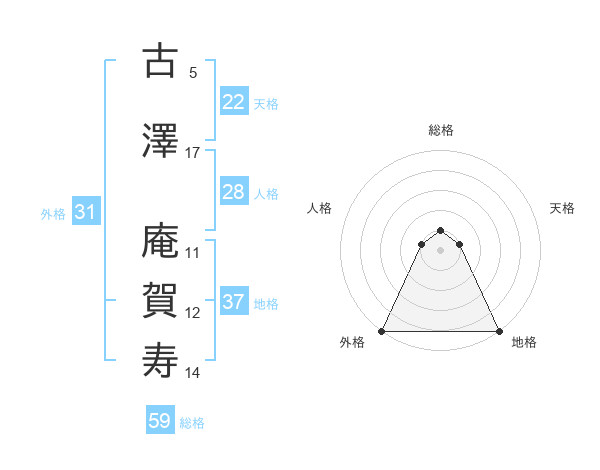 古澤 庵賀寿さんを姓名の画数から五運を鑑定