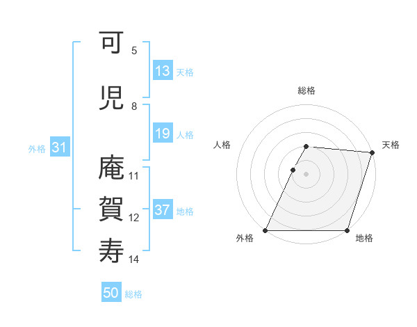 可児 庵賀寿さんを姓名の画数から五運を鑑定