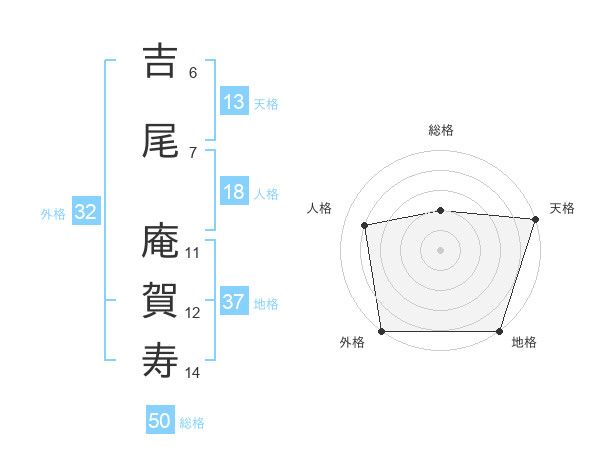 吉尾 庵賀寿さんを姓名の画数から五運を鑑定